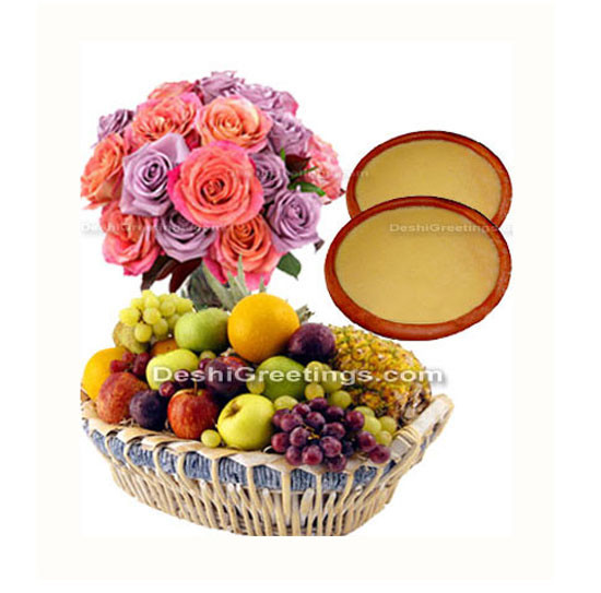Mothers Day Combo Gifts - Women - Flowerl and Seasonal Fruits Basket