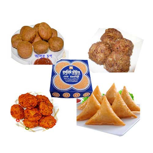 • Topped with Shami Kabab -  5 Pcs, Alo Chop  -  5 Pcs, Chicken Sumucha -  5 Pcs, Chicken Roll - 5 pcs, Piajo -  5 Pcs, Begoni - 5 Pcs, Juice - 5 Pkt.