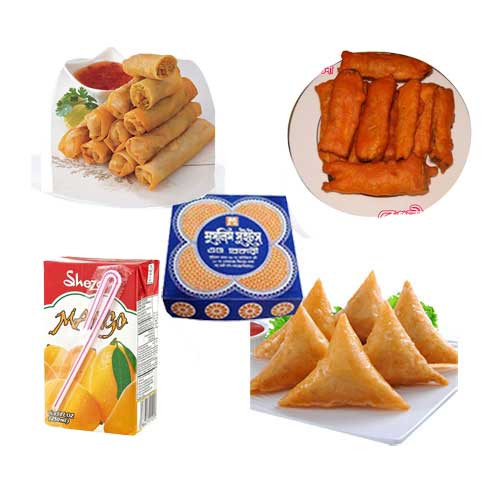 • Topped with Shami Kabab -  6 Pcs, Alo Chop  -  6 Pcs, Chicken Sumucha -  6 Pcs, Chicken Roll - 6 pcs, Piajo -  6 Pcs, Begoni - 6 Pcs, Juice - 6 Pkt.