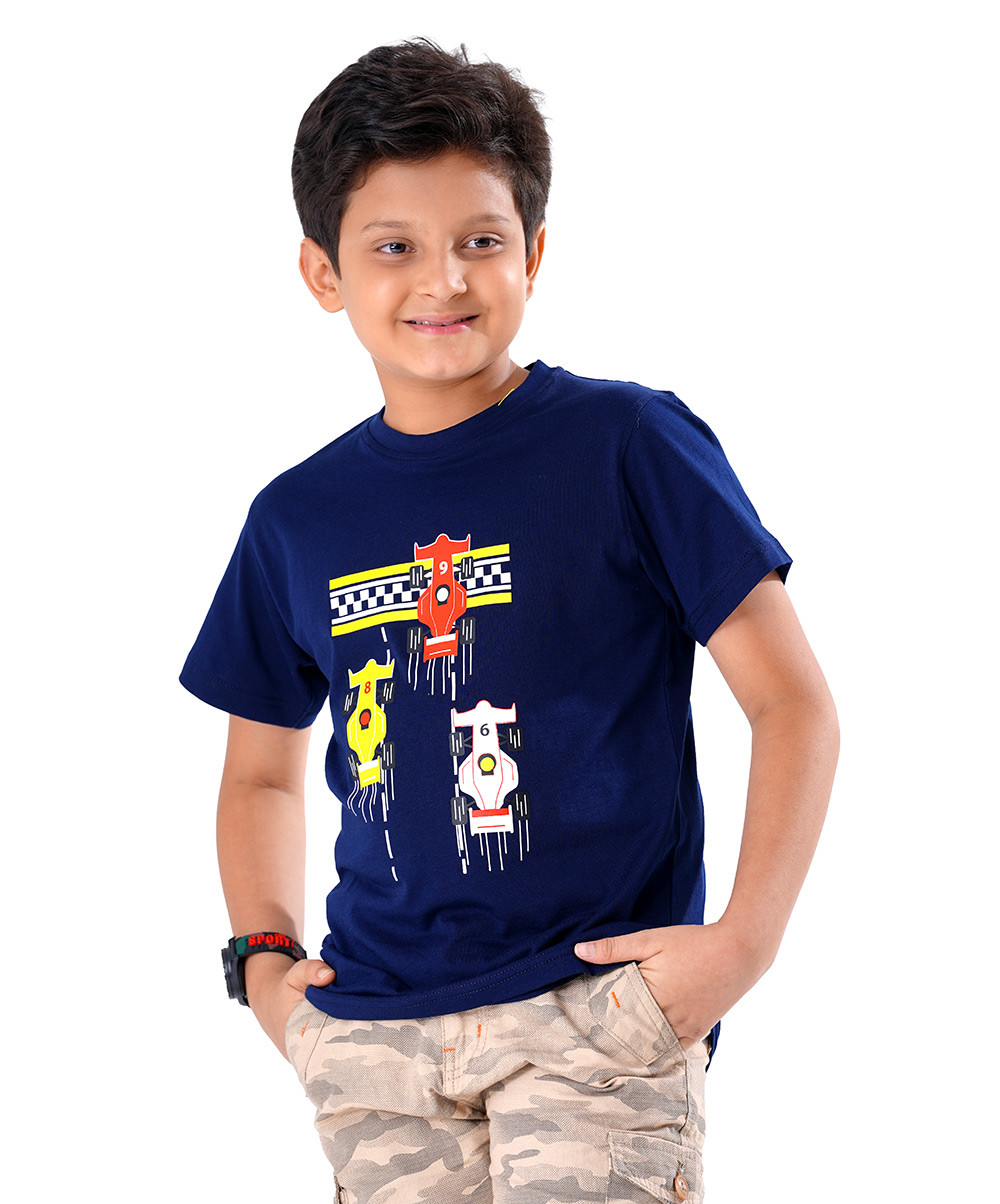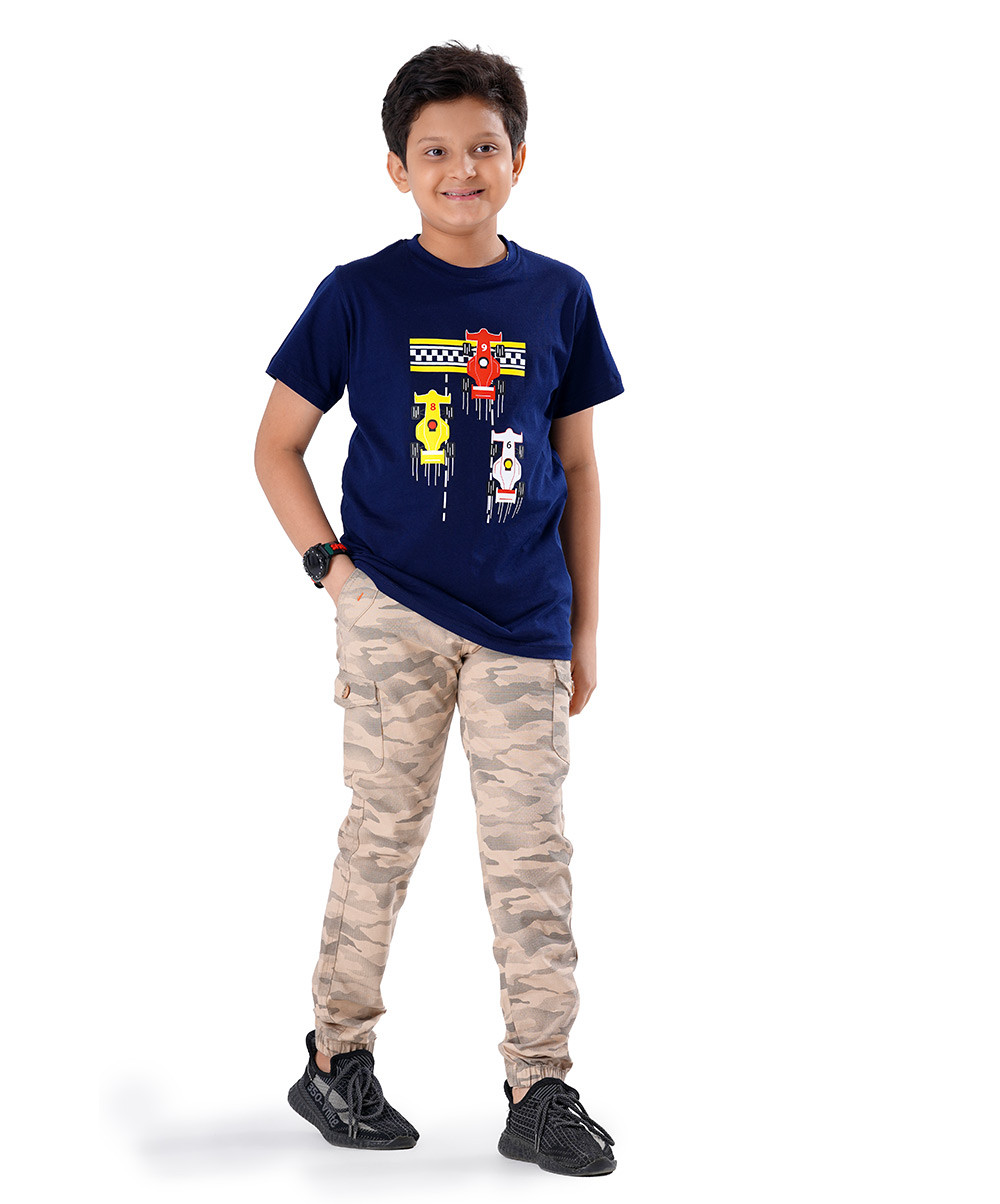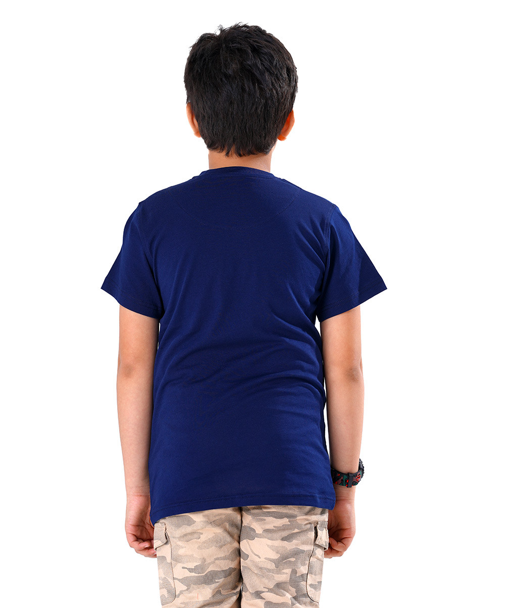 The Cotton single jersey fabric ensures a soft and breathable feel against your skin, making it an ideal choice for everyday wear. The deep navy blue color adds a touch of sophistication, while the classic crew neck and short sleeves provide a timeless silhouette. The eye-catching print on the chest adds a touch of personality, making this T-Shirt a standout piece in your casual collection.