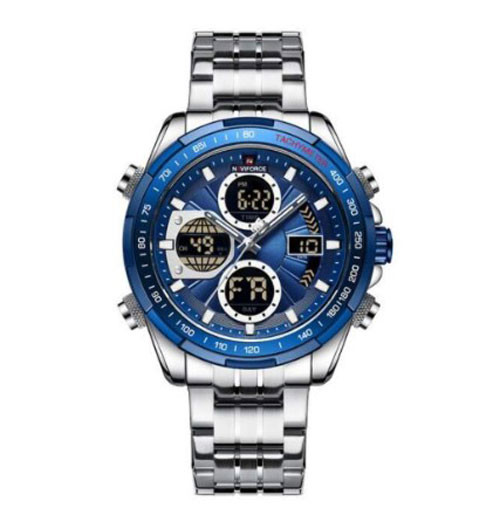 Naviforce Stainless Steel Dual Time Watch For Men