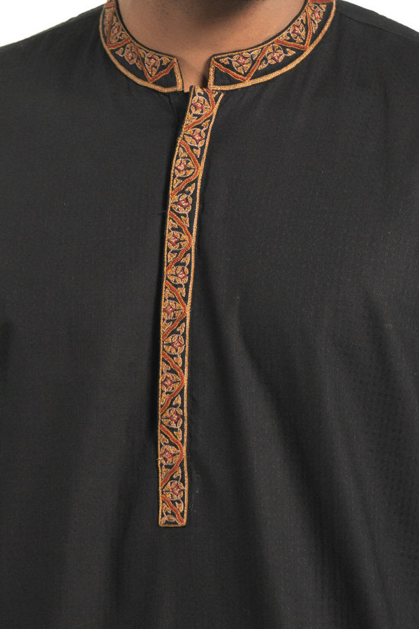 Introducing our Black Cotton Embroidered Panjabi, a perfect blend of tradition and modern style. Crafted from premium quality cotton, this panjabi ensures exceptional comfort and breathability. The vibrant Black color is enhanced by intricate embroidery, adding an elegant and sophisticated touch to your attire. Ideal for festive celebrations, cultural events, or casual gatherings, this versatile panjabi is a must-have in any wardrobe. Elevate your look with the timeless charm of this beautifully designed embroidered panjabi.