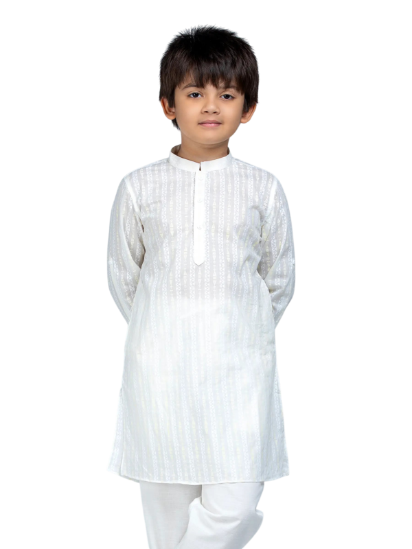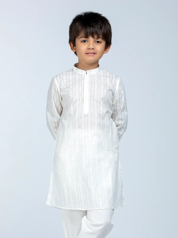 Kids Panjabi - Off White Printed Cotton Panjabi