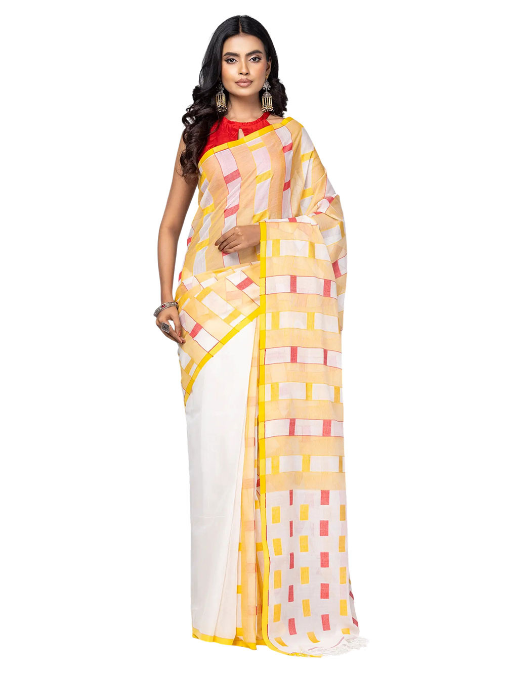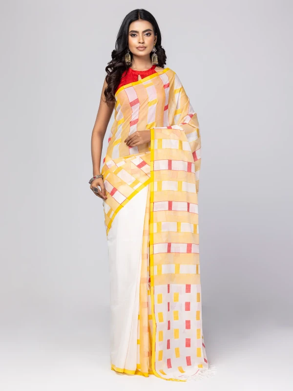 Sharee - Off White Tangail Cotton Baluchari Sharee