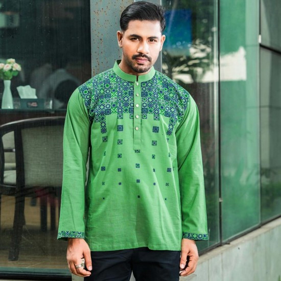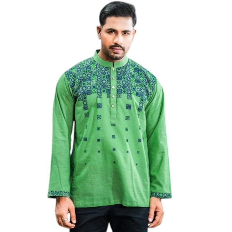 Add a sophisticated touch to your wardrobe with this olive color printed cotton full sleeve gents fatua. Crafted from premium-quality breathable cotton, it ensures all-day comfort while keeping you effortlessly stylish. The subtle yet elegant olive print makes it perfect for casual wear, cultural events, or festive gatherings.
