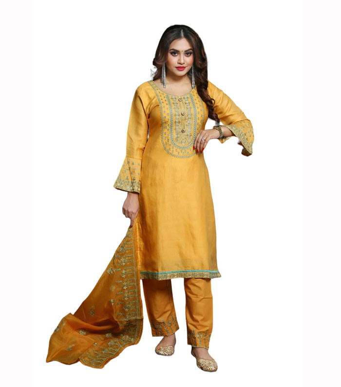 Elevate your ethnic wardrobe with our exquisite Embroidered Stitched Silk Salwar Kameez for Women. Crafted from luxurious silk fabric, this ensemble exudes elegance and sophistication. Intricately embroidered with fine detailing, the delicate stitches add a touch of charm to the traditional design. Whether it's a festive occasion or a special event, this Salwar Kameez ensemble is sure to make you stand out with its timeless beauty and graceful silhouette.