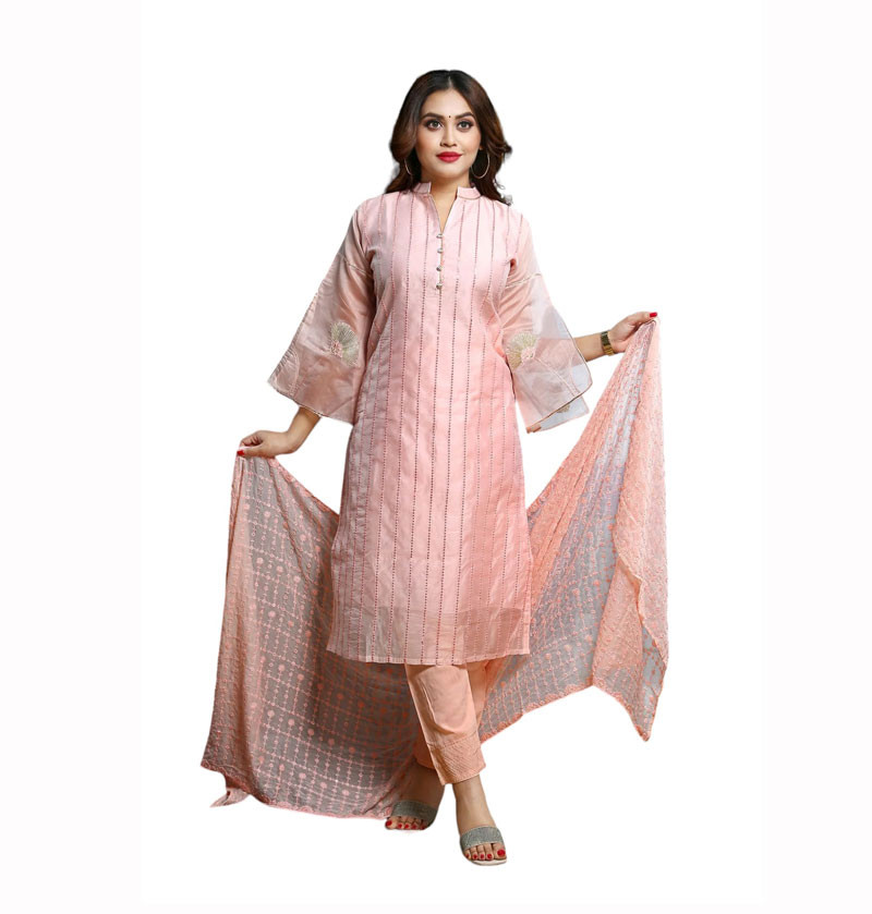 Elevate your ethnic wardrobe with our exquisite Embroidered Stitched Silk Salwar Kameez for Women. Crafted from luxurious silk fabric, this ensemble exudes elegance and sophistication. Intricately embroidered with fine detailing, the delicate stitches add a touch of charm to the traditional design. Whether it's a festive occasion or a special event, this Salwar Kameez ensemble is sure to make you stand out with its timeless beauty and graceful silhouette.