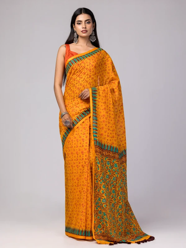 Sharee - Orange Printed Cotton Sharee