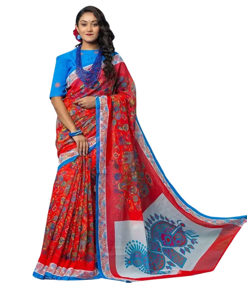Women’s Sharee - Organz Silk sharee features Digital-Print & Hand-work