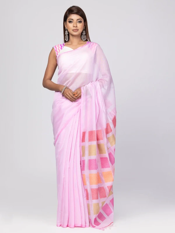 Sharee - Pink Tangail Half-Silk Baluchari Sharee