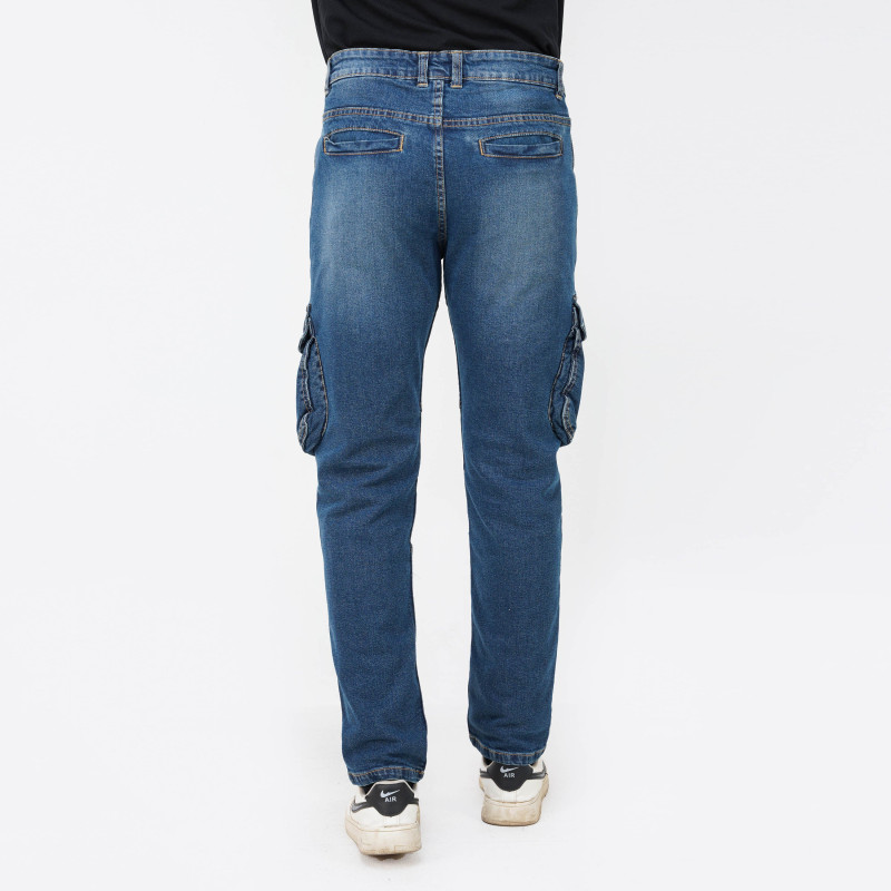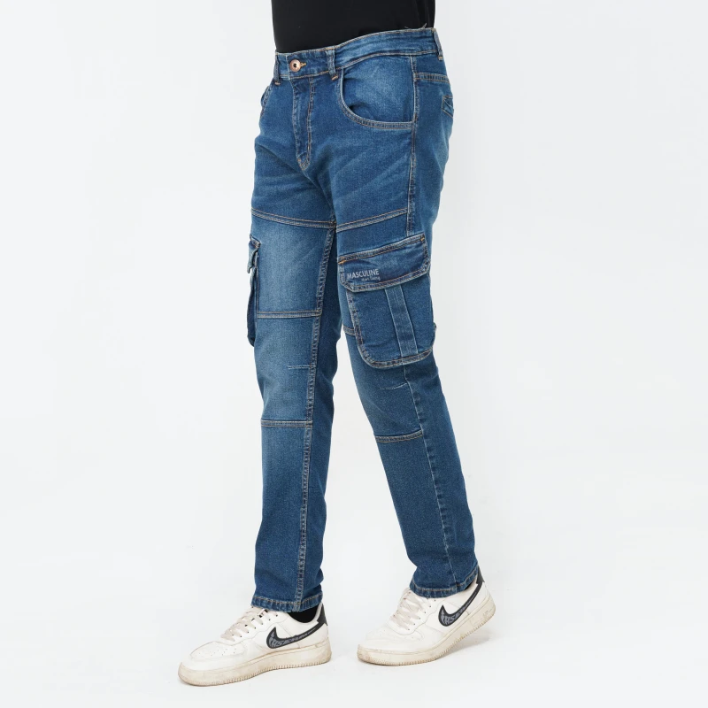 Premium Denim Semi Fit Cargo Mid Blue Pant For Men