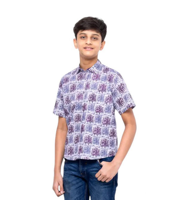 Boy Kids - Purple Printed Cotton Shirt