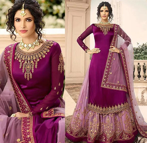 Dive into the essence of traditional elegance with this semi-stitched ensemble that radiates charm and sophistication. Crafted from soft georgette, this outfit showcases exquisite heavy embroidery that adorns the body and sleeves, creating a visual feast of intricate patterns.