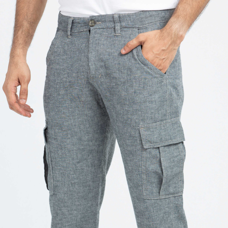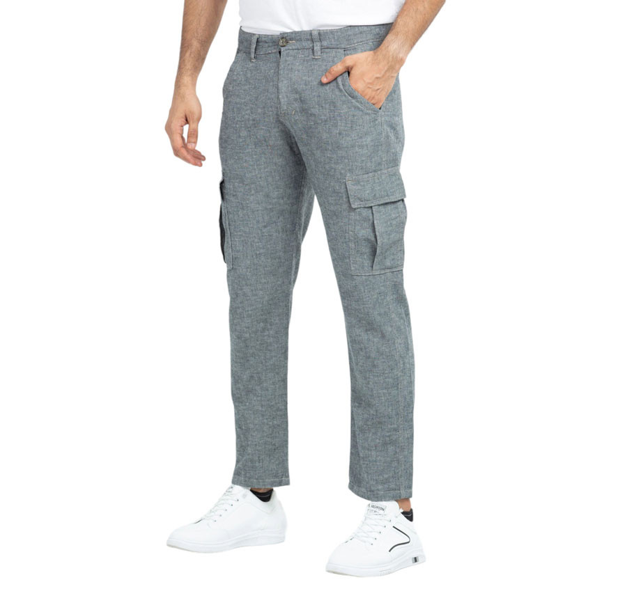 Ramie Cotton Flexi Cargo Steel Grey Pant For Men