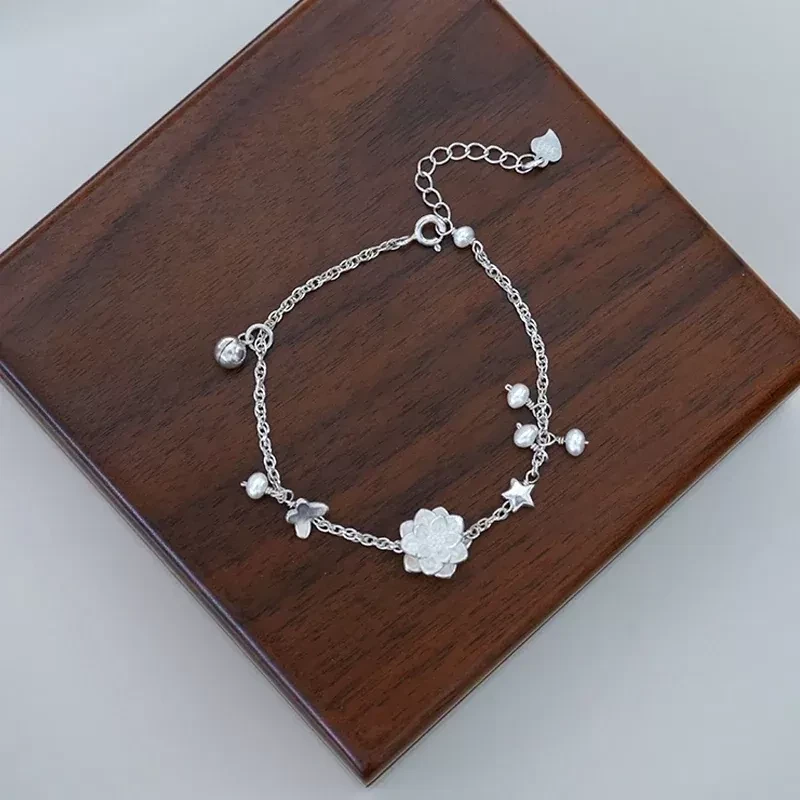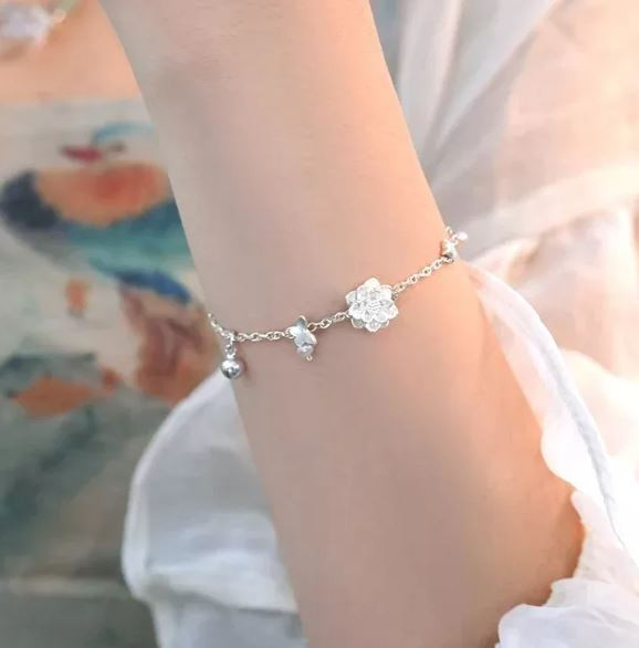 Bracelet - Real Pearl Flower Butterfly Bracelet 925 Sterling Silver