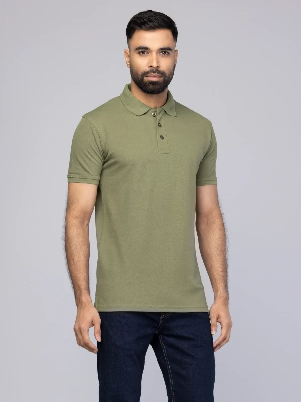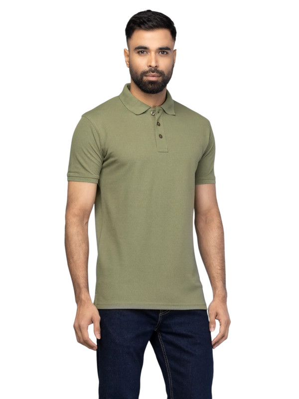 Polo Shirt : Sage Green Mixed Cotton Polo Shirt