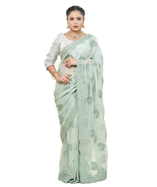 Introducing our stunning Shimmer Georgette Embroidered Saree, a masterpiece of elegance and sophistication. Crafted from high-quality shimmer georgette fabric, this saree boasts a luxurious shimmering effect that catches the light beautifully. Adorned with intricate embroidery, this saree exudes timeless charm and grace. Perfect for weddings, parties, or special occasions, this saree is sure to make you stand out with its exquisite design and stunning craftsmanship.
