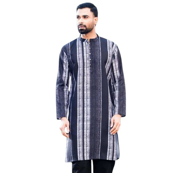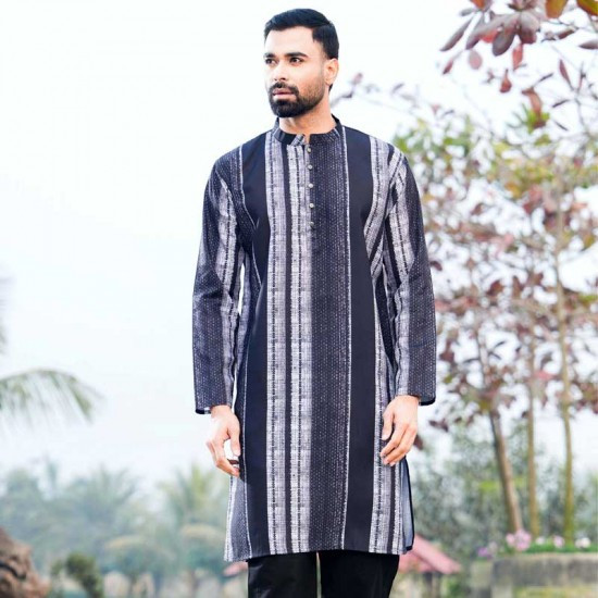 Short Panjabi - Black color printied design cotton regular fit ekchat Panjabi