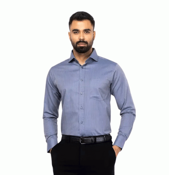 Slate Blue Mixed Cotton Executive Shirt For Men