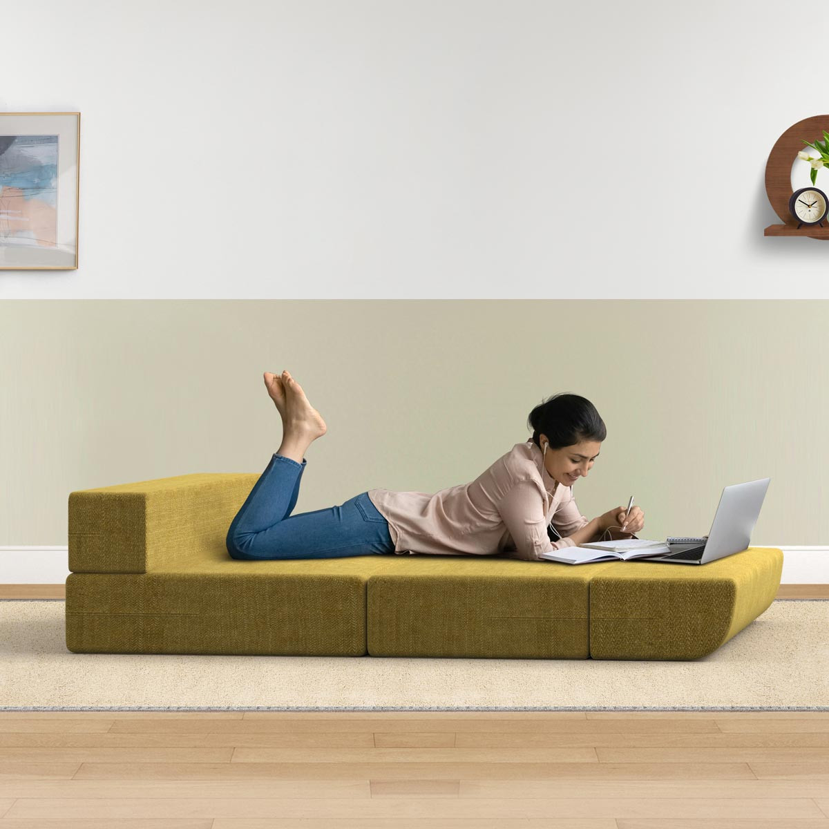 Sofa Cum Bed-Yellow (Single)