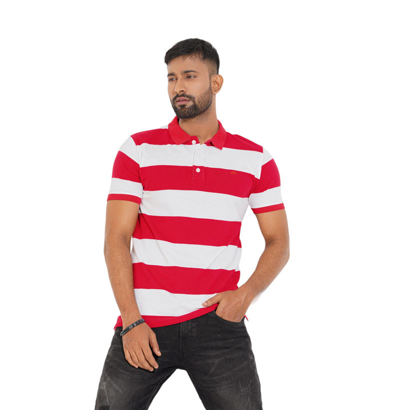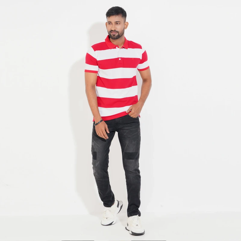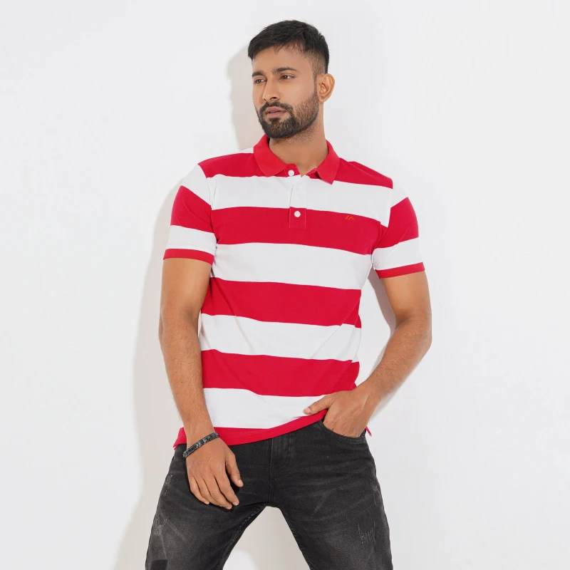 Stripe Polo Shirt - Red & White For Men