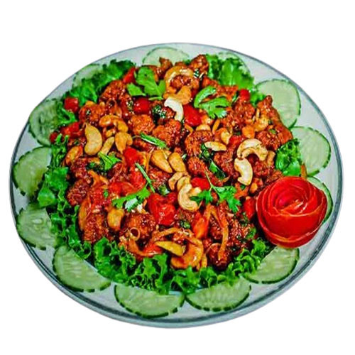 • Warm fried cube cut chicken, roasted cashew nut, tomato, onion, coriander & spicy sauce.