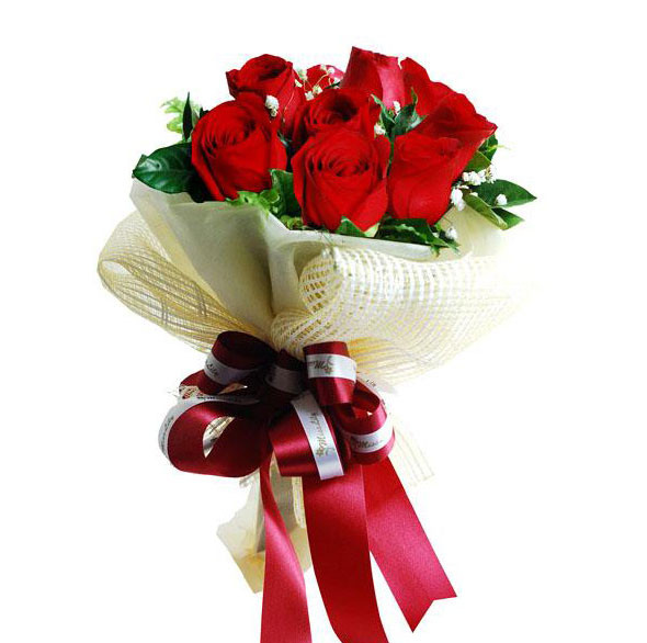 • 6 Pcs / 10 Pcs /  15 Pcs / Beautiful Imported Red Roses With Color Tissue in a Bouquet.