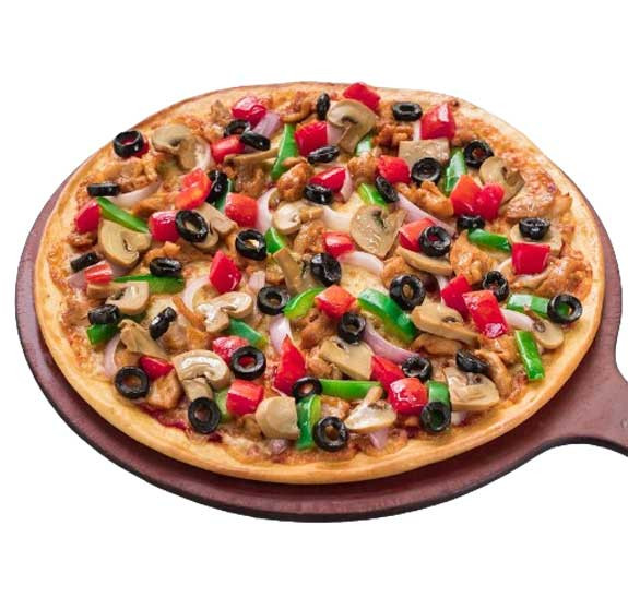 • Topped with beef pepperoni, beef, spicy chicken, chicken, onions, mushrooms, capsicum & black olives.