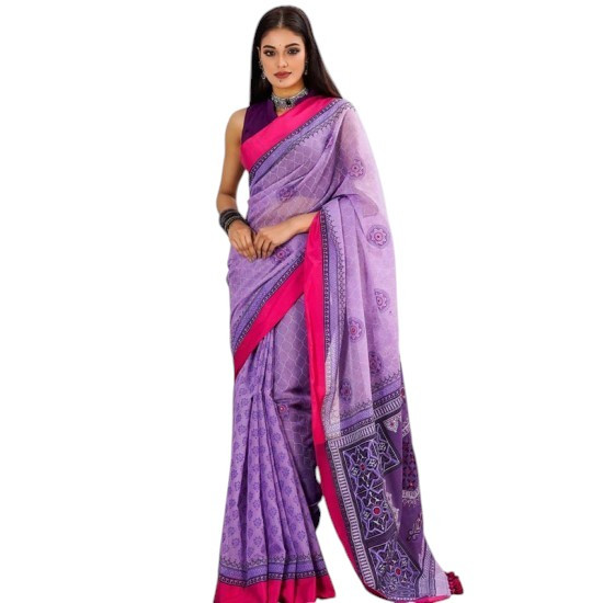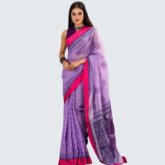 Silk Sharee - Violet color printed cotton silk Sharee