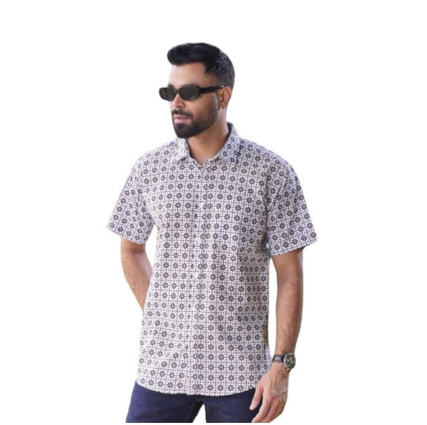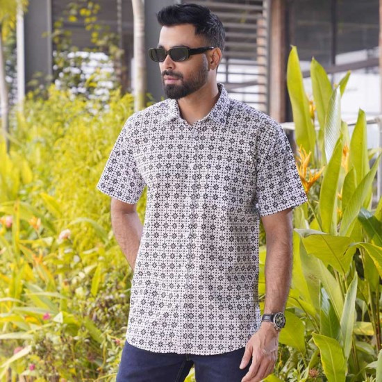 Half Sleeve Shirt - White colour printed cotton Shirt