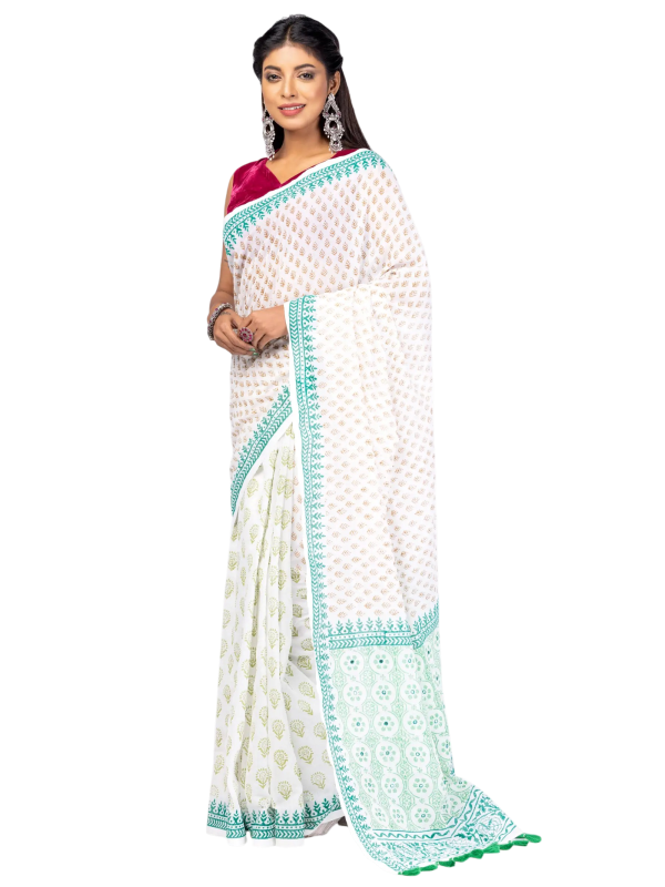 Sharee - White Printed Cotton Sharee