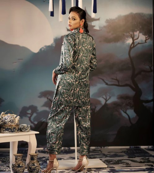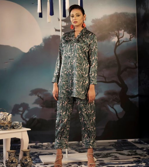 Refreshing Elegance: Women's 2 Piece Green Print Set