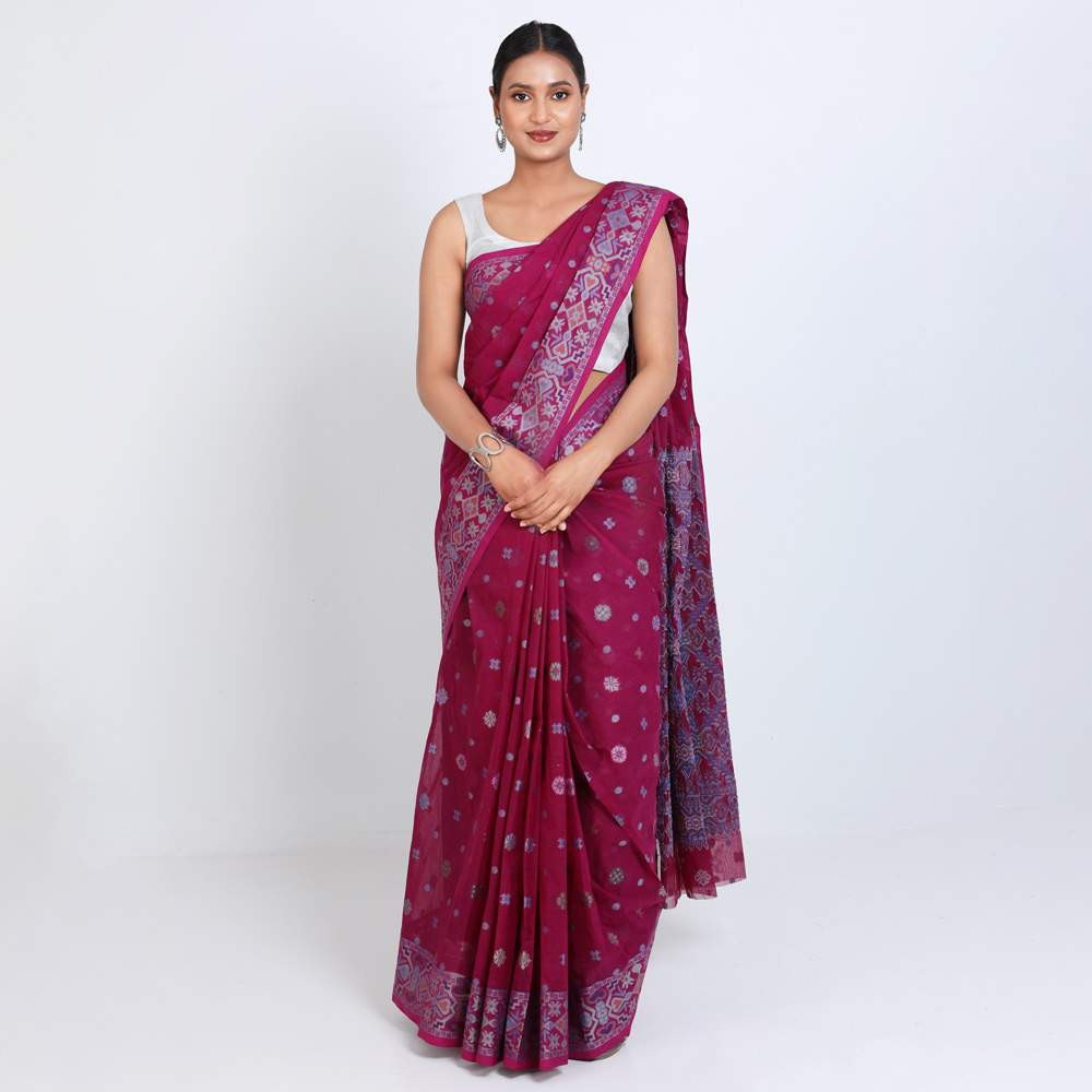 Introducing our exquisite slub-cotton Sharee, adorned with intricate screen-print and handwork detailing, designed to elevate your ethnic wardrobe with effortless elegance. Crafted from high-quality slub-cotton fabric, this Sari boasts a luxurious texture and comfortable feel, perfect for all-day wear. The delicate screen-print adds a touch of sophistication, while the handwork detailing adds a hint of artisanal charm. Whether it's a festive celebration or a formal event, this Sari is sure to make you stand out with its unique blend of traditional craftsmanship and contemporary style. Embrace timeless beauty with our slub-cotton Sari and make a statement with every step.