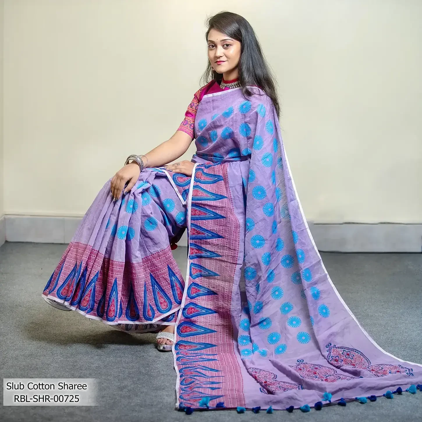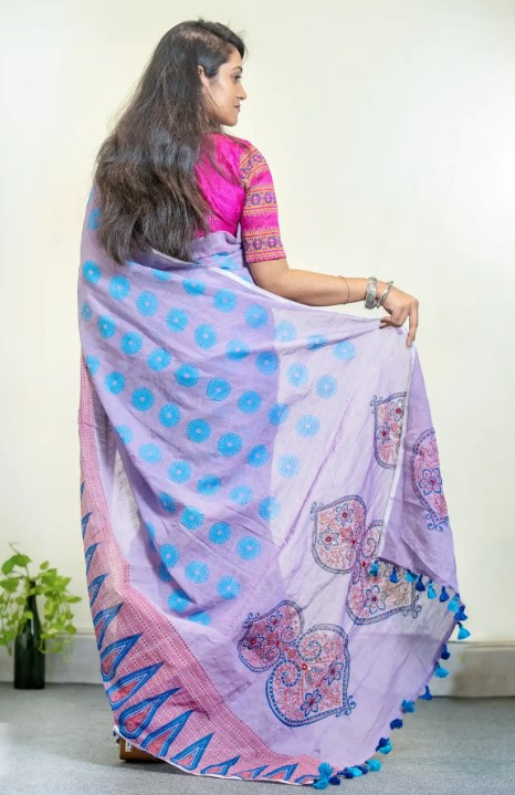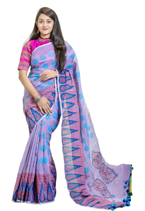 Women’s Light-voilet Slub-cotton Sharee