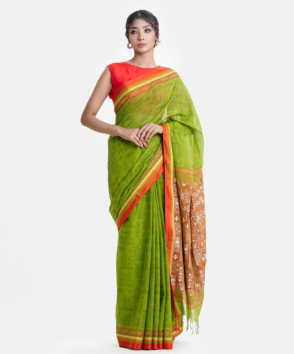 Elevate your wardrobe with our Women's Cotton Sharee. This exquisite saree combines the richness of Cotton Sharee with the comfort of cotton, offering a luxurious feel and graceful drape. Perfect for both casual and festive occasions, it features elegant patterns and a lightweight design that ensures effortless sophistication.