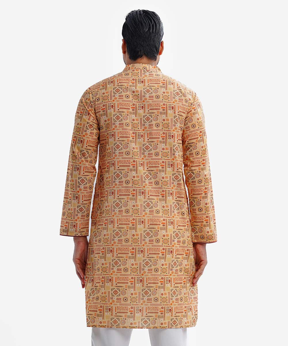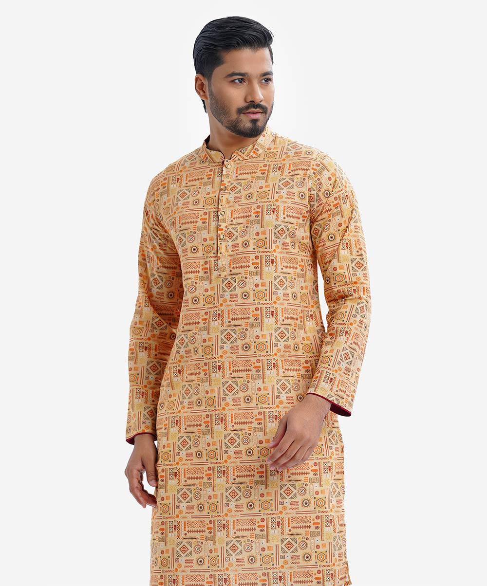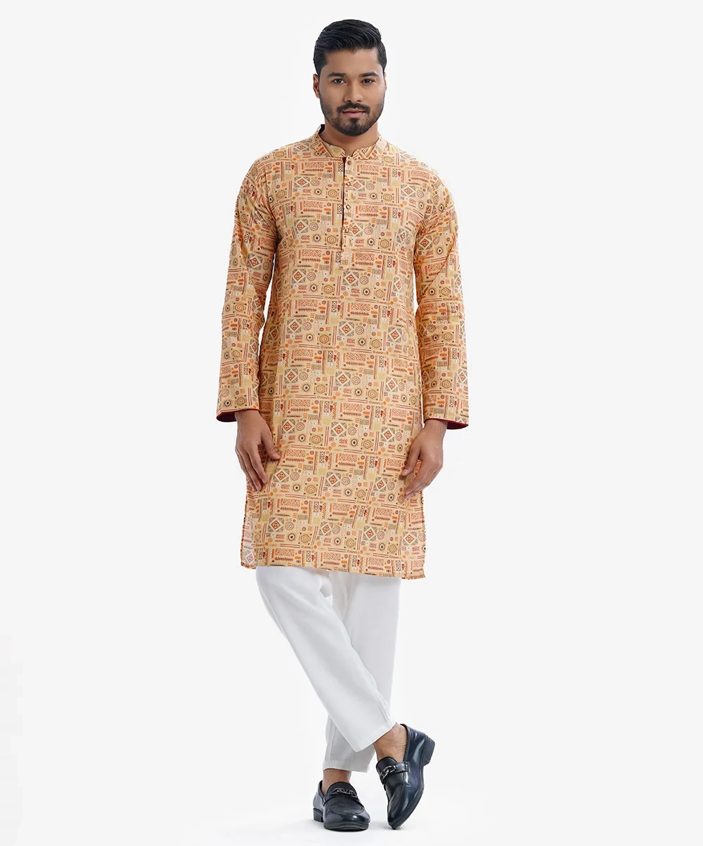 This 100% cotton panjabi features a smart collar and placket with embroidered thread, perfect for any formal or casual event. The deep-tone brunette color will complement almost any pair of pants you wear with. Lereve Men's panjabi can be the ideal choice for you
