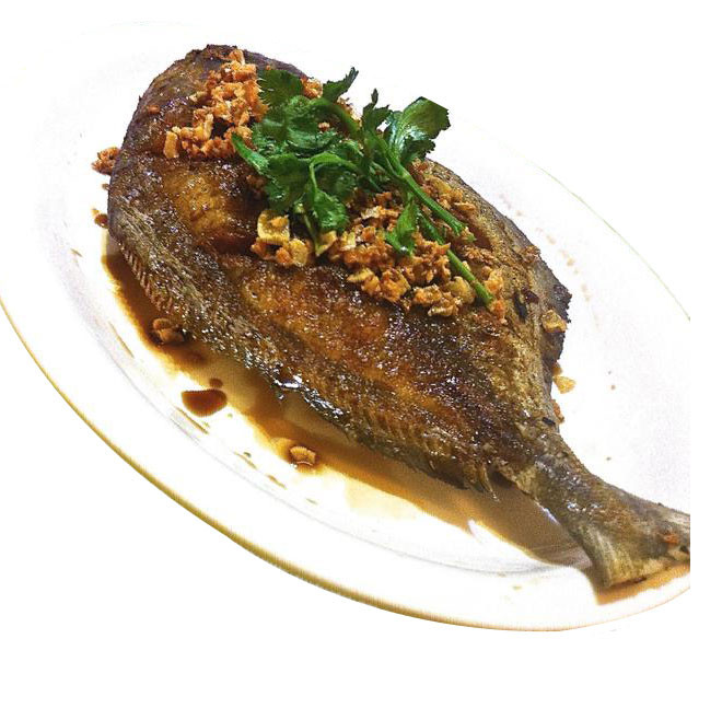 Delicious Fried Pomfret with Hot Garlic Sauce from re-known Restaurant Abacus Restaurant at Gulshan in Dhaka . Ideal for 2 persons . This item is only available in the city of Dhaka . Picture shown may not be the same as the original Food .