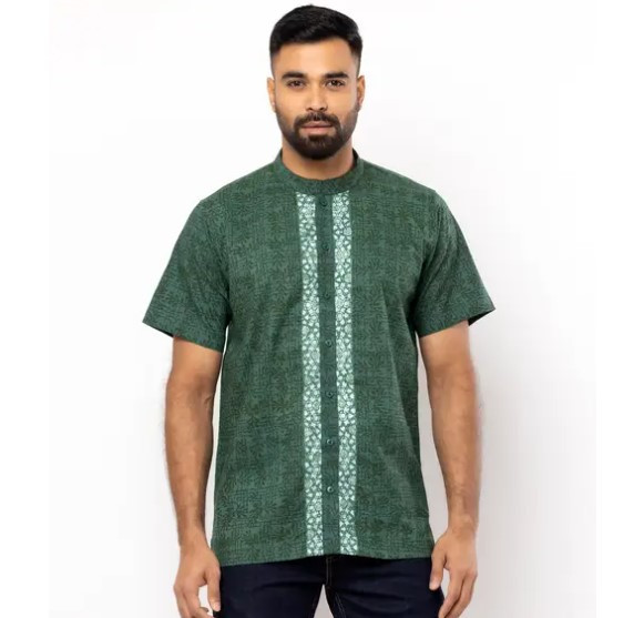 Introducing our Green Printed Cotton Fatua a delightful blend of vibrant style and thoughtful detailing. Crafted from high-quality cotton, this garment combines comfort with eye-catching aesthetics. The lively green print sets the stage for the intricate turquoise and light green embroidery, adding a touch of elegance to your ensemble.