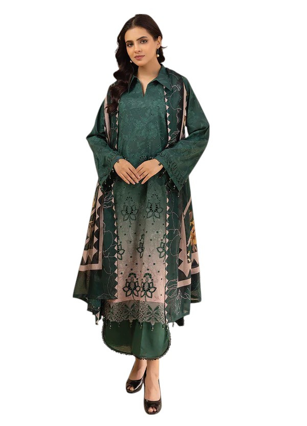 Pakistani Embroidered Printed Unstitched Lawn 3pcs- (2)
