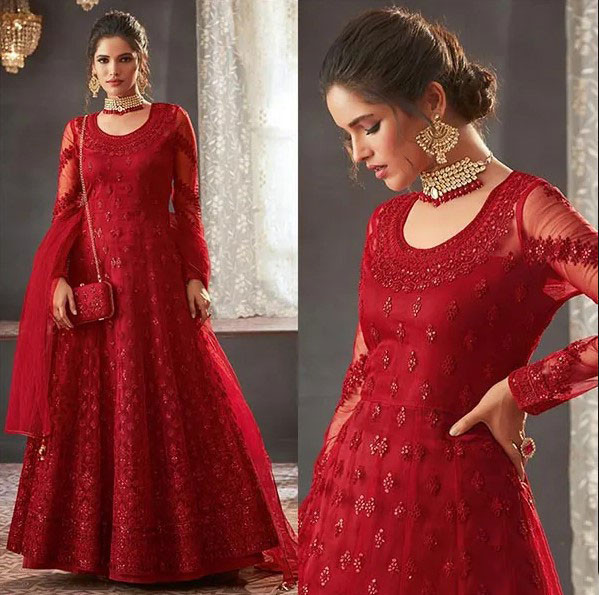 Dive into the essence of traditional elegance with this semi-stitched ensemble that radiates charm and sophistication. Crafted from soft georgette, this outfit showcases exquisite heavy embroidery that adorns the body and sleeves, creating a visual feast of intricate patterns.