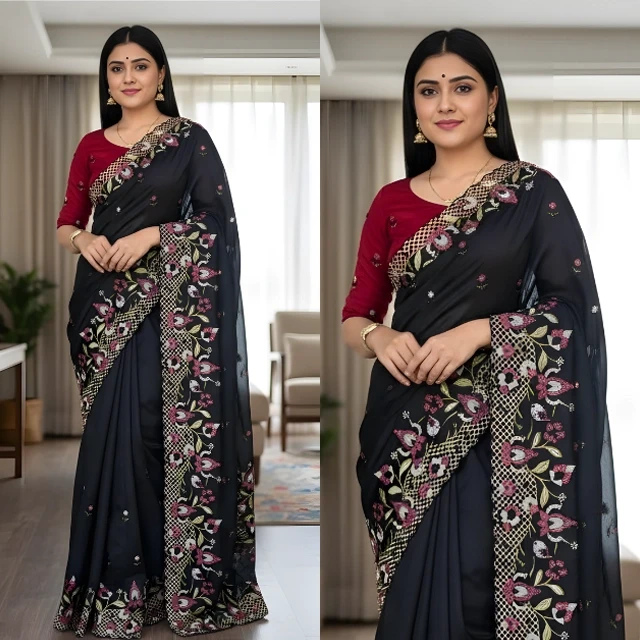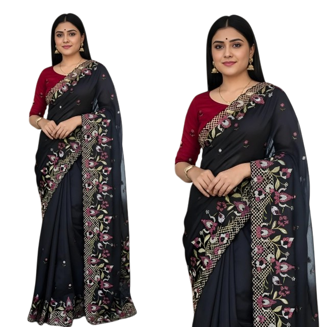 • Blouse piece: Indian chosa cloth embroidery work will be one yard
