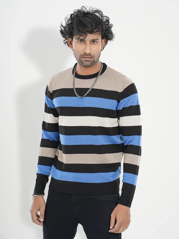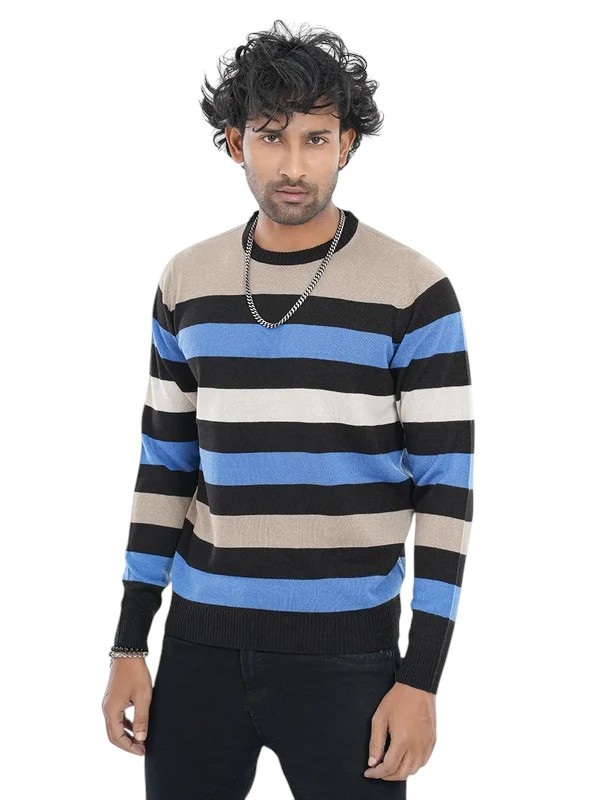 This highly comfortable men's pullover sweater features a round neck and a stylish striped design with multiple vertical weavings. Crafted from soft materials, it offers a cozy fit while bringing a timeless, classic look perfect for any casual occasion. The Pullover Sweater offers a timeless and classic look for men's casual occasions. With a round neck and stylish striped design, it provides a cozy fit due to its soft materials and vertical weavings. Elevate your comfort and style with this highly comfortable sweater.