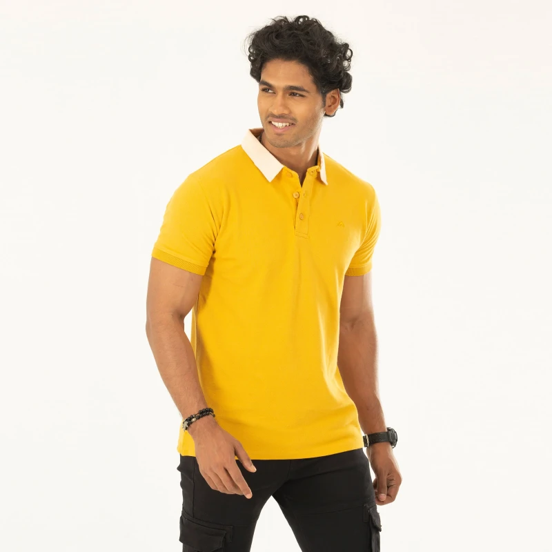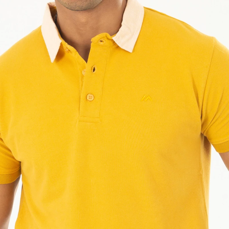 Woven Collar Contrast Solid Polo For Men