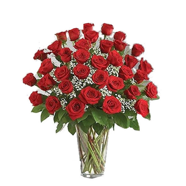 30 Small to Medium size long stemmed beautiful Indian red roses with Vase. Design & shape of the Vase may be differ shown in the picture.