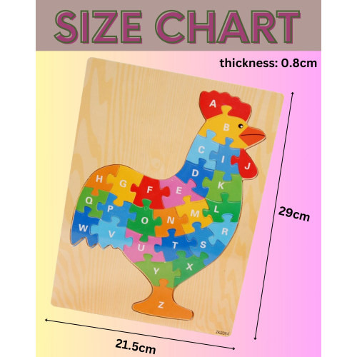 Embark on an educational adventure with the 3D Cartoon English Alphabet Puzzle, uniquely shaped as an adorable chicken and expertly crafted from solid wood. Featuring 26 puzzle pieces adorned with the English alphabet, this engaging game not only helps children master the alphabet but also enhances hand-eye coordination and wrist flexibility. With its diverse color combinations, the puzzle offers a playful way for children to learn about various colors, names, and shapes. Immerse your little ones in the joy of discovery through this delightful 3D cartoon puzzle.