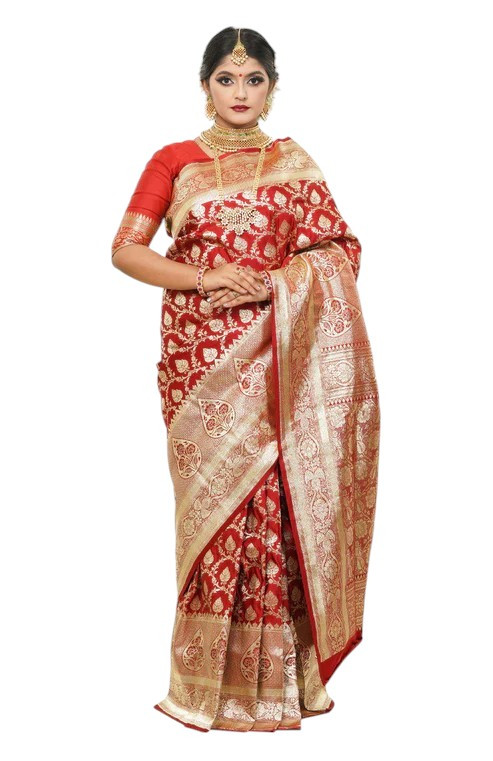 Floral Woven Pure Banarasi Silk Sharee in Red