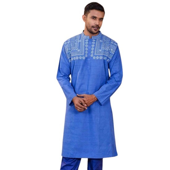 Short Panjabi - Blue color embroidered design cotton Panjabi