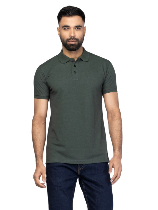 Polo Shirt : Bottle Green Mixed Cotton Polo Shirt