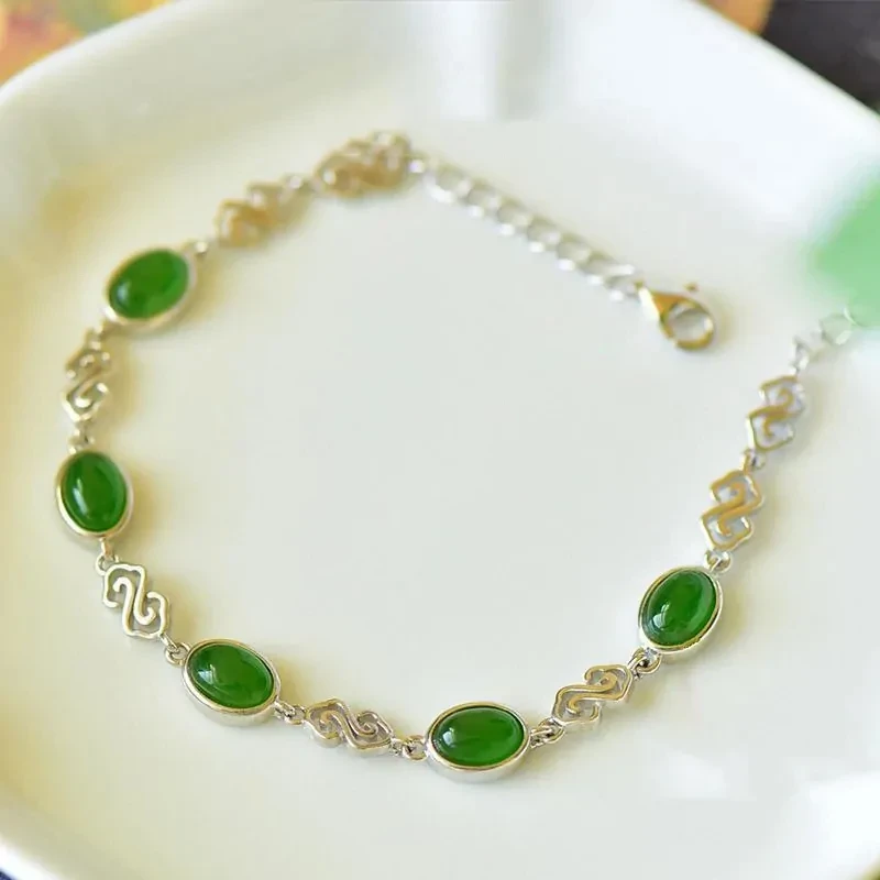 Bracelet - Original Retro Chinese Style Natural Hetian Jade Auspicious Cloud Bracelet for Women