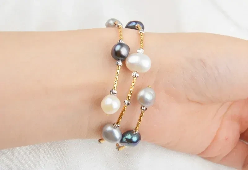 Bracelet -  Real Natural Freshwater Baroque Pearl Bracelets & Bangles For Women Jewelry Gift